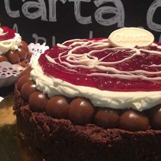 Brownie con Dulce de Leche, Crema y Frambuesas